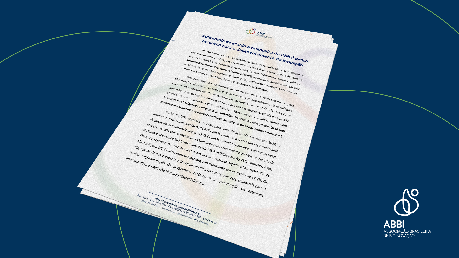 Nesse sentido, a ABBI defende que iniciativas que busquem garantir autonomia de gestão e financeira ao Instituto devem ser priorizadas como soluções para o fortalecimento do órgão. Ao fazê-lo, garante-se ao INPI maior eficiência na alocação de seus recursos na proporção necessária para a promoção de inovações, na melhoria dos seus procedimentos, com tecnologia, infraestrutura e pessoal suficiente e qualificado.