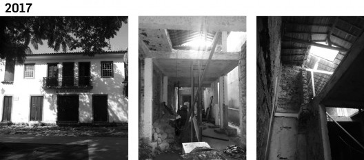 O interior do sobrado tombado do antigo cinema da cidade de Paraty encontrava-se em ruínas, porém livre de divisórias, tal qual uma casca vazia, inacabada e aberta à livre ocupação. As marcas do tempo, das sucessivas reformas e modificações, todas à mostra revelando parte da história do lugar. Como uma obra aberta, tratava-se de um convite às novas possibilidades, mas também de uma forte memória e identidade à preservar. O projeto de arquitetura se orienta, portanto, a partir da percepção de que a história deste prédio tombado não está congelada no tempo, mas aberta à sua continuidade como espaço vivo de cultura e memória em permanente construção.