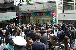 A Aliança pelo Centro Histórico de São Paulo inaugurou na manhã desta quinta-feira (20/8) sua Base de Informações e Apoio na Rua da Quitanda, 80. Os Agentes de Apoio à Comunidade, contratados pela Associação Viva o Centro, já percorrem, em turnos que vão das 6h às 24h, de segunda a domingo, todas as ruas e praças do Triângulo Histórico. Também começou a funcionar a Central de Atendimento à Comunidade (tel. 3104-7981, fax.3556-8979, e-mail: alianca@vivaocentro.org.br), de segunda a sexta, das 10h às 17h.