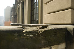 Com o passar do tempo, a poluição e o agir do clima, a fachada do Teatro ganhou um aspecto sujo e algumas sacadas estão se desmanchando. ?O Municipal possui uma pedra porosa que absorve muita água. Com a obra, deixaremos essa pedra respirar e a água não vai penetrar?, diz Ronaldo Ritti, diretor da área de restauro da Concrejato, empresa ganhadora da licitação pública feita pela Secretaria de Cultura e responsável também pela restauração da Biblioteca Mario de Andrade.
