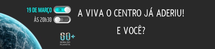 A Associação Viva o Centro aderiu nesta sexta-feira (4) à Hora do Planeta 2016, que ocorrerá no dia 19 de março, entre as 20h30 e as 21h30.