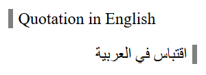 < blockquote dir = "auto" > Quotation in English</ blockquote > < blockquote dir = "auto" > اقتباس في العربية</ blockquote >