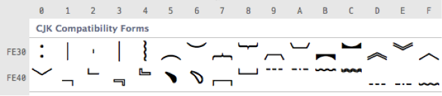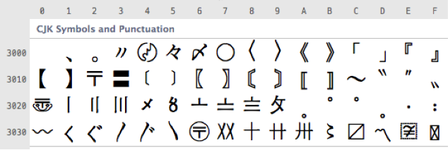 CJK 기호 및 구두점 (U+3000~): 전각 괄호, 온점, 고리점