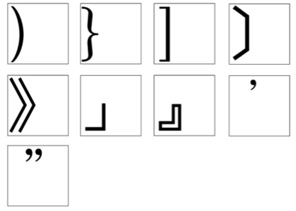 한글 환경에서는 다음과 같은 문장 부호를 사용한다.