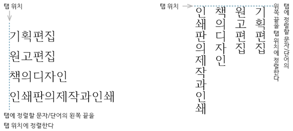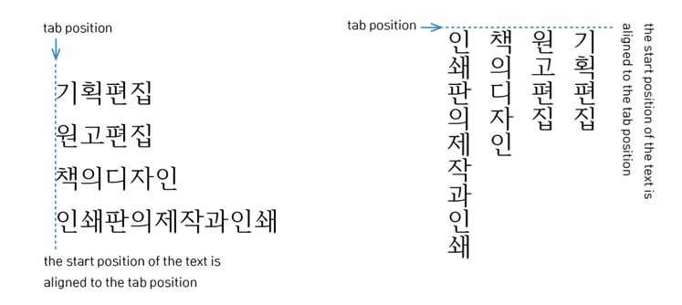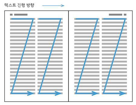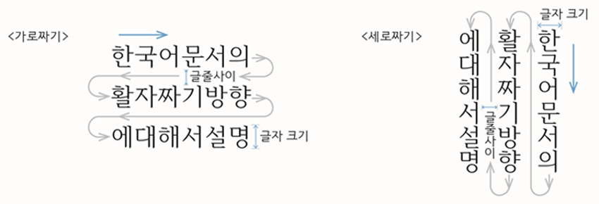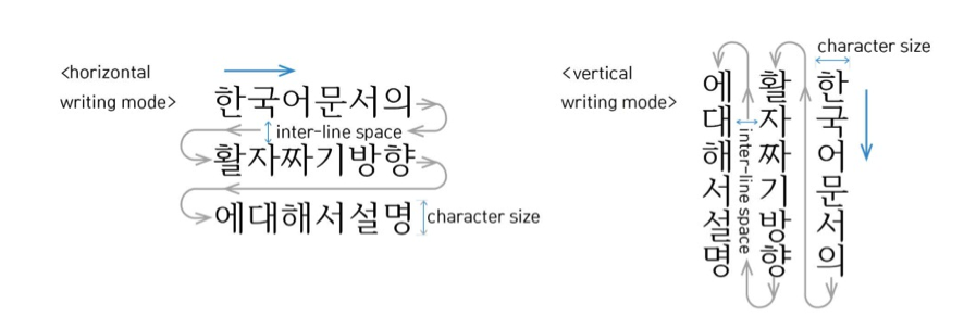 페이지의 크기(설정한 지면·화면의 크기), 진행 방향