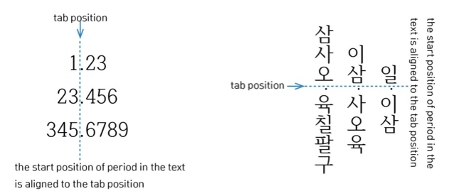 오른쪽 : 개체 가장자리의 오른쪽과 본문 사이의 간격