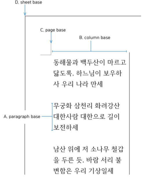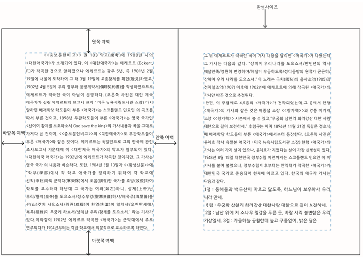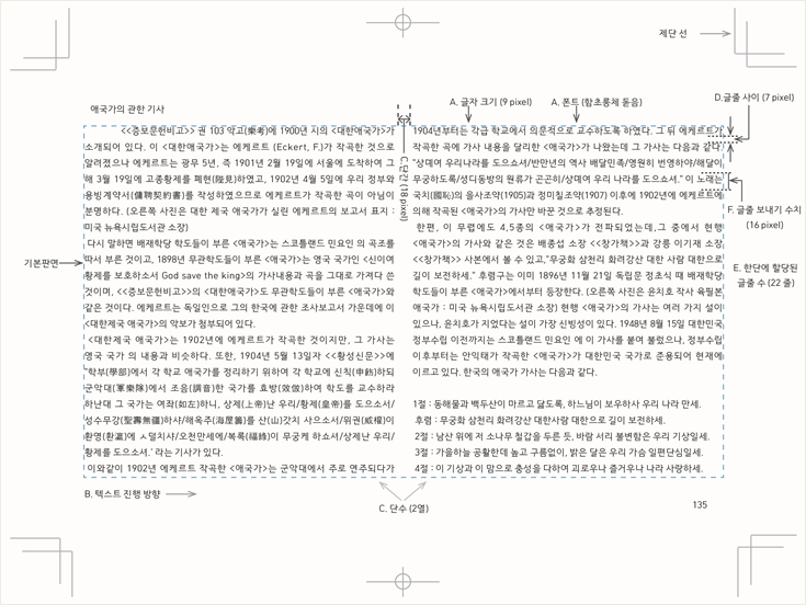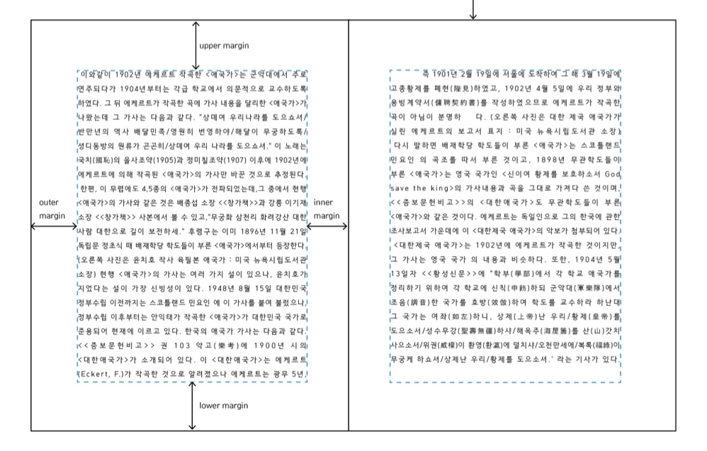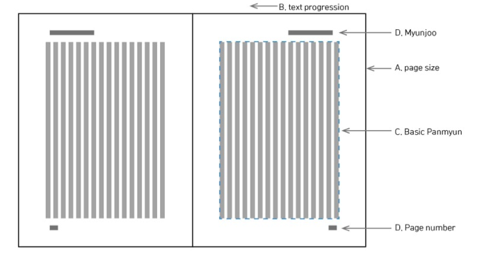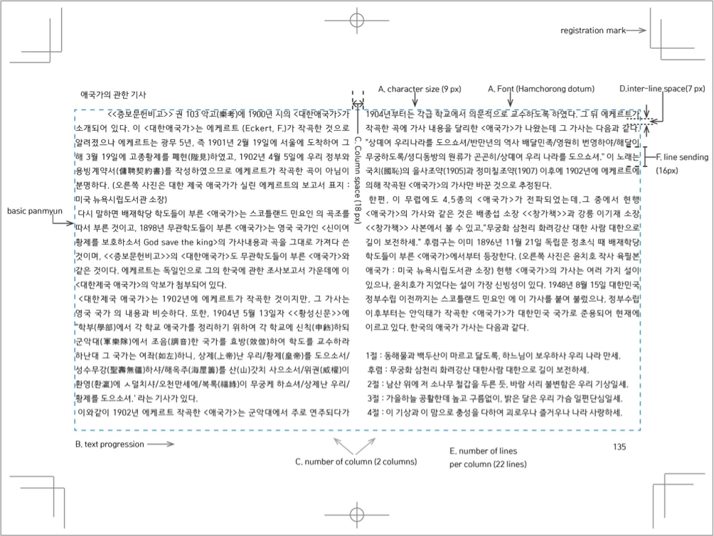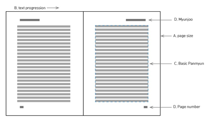 The Hangul text layout system is approached from two perspectives: overall page layout design and page body design.