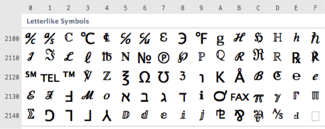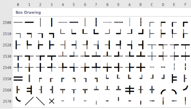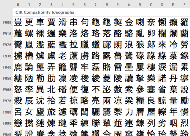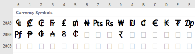 기본 로마자 (U+0020~U+007F): 로마자(비례폭), 숫자, 반각 약물