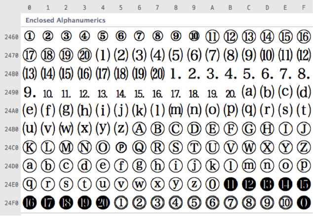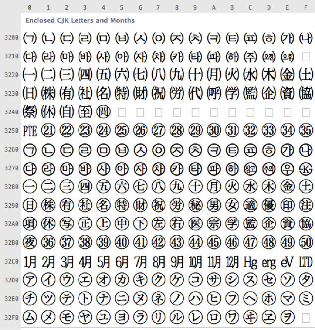 둘러싼 CJK 문자·숫자 (U+3200~)