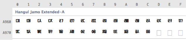 Hangul Jamo Extended-A: U+A960 ~ U+A970