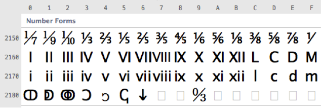 숫자류 (U+2050~) : 분수, 로마 숫자
