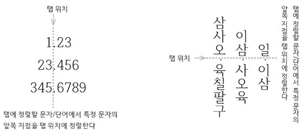 왼쪽 : 개체 가장자리의 왼쪽과 본문 사이의 간격