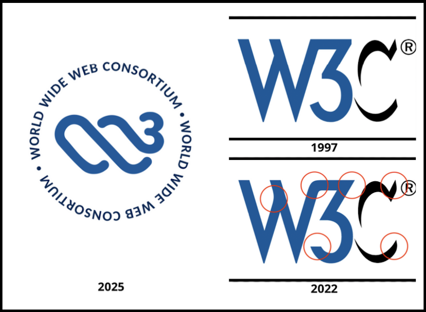 W3Cロゴの変遷:2025年版と1997年~2022年版